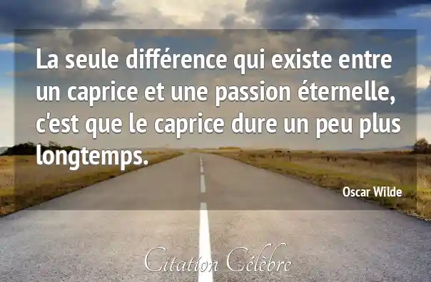 La seule différence qui existe entre un caprice et une passion éternelle, c'est que le caprice dure un peu plus longtemps.