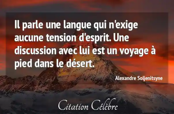 Il parle une langue qui n'exige aucune tension d'esprit. Une discussion avec lui est un voyage à pied dans le désert.