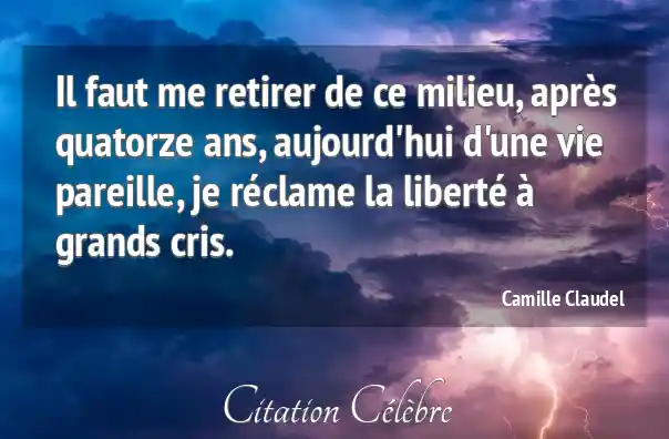 Il faut me retirer de ce milieu, après quatorze ans, aujourd'hui d'une vie pareille, je réclame la liberté à grands cris.