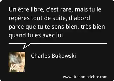 Un être libre, c'est rare, mais tu le repères tout de suite, d'abord parce que tu te sens bien, très bien quand tu es avec lui.