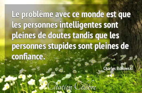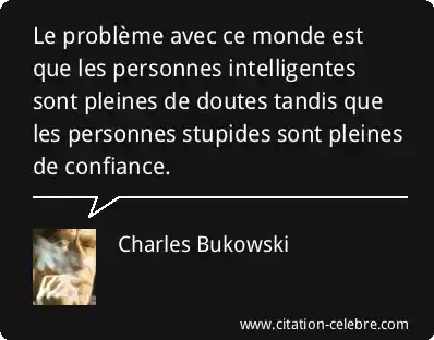 Le problème avec ce monde est que les personnes intelligentes sont pleines de doutes tandis que les personnes stupides sont pleines de confiance.