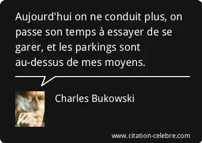 Aujourd'hui on ne conduit plus, on passe son temps à essayer de se garer, et les parkings sont au-dessus de mes moyens.