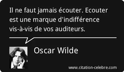 Il ne faut jamais écouter. Ecouter est une marque d'indifférence vis-à-vis de vos auditeurs.