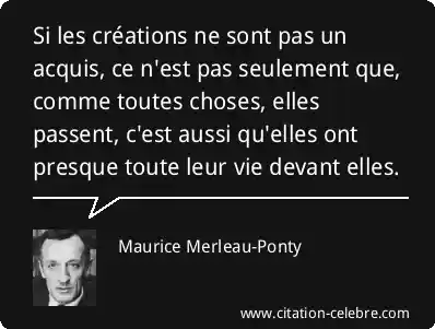 Si les créations ne sont pas un acquis, ce n'est pas seulement que, comme toutes choses, elles passent, c'est aussi qu'elles ont presque toute leur vie devant elles.