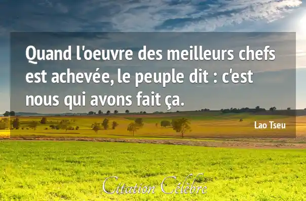 Citation Lao-Tseu peuple : Quand l'oeuvre des meilleurs chefs est achevée, le peuple dit...
