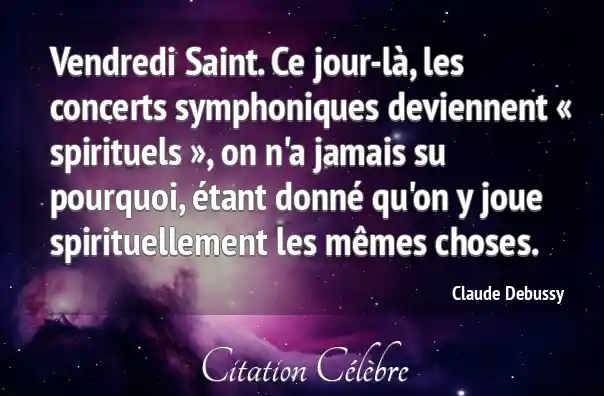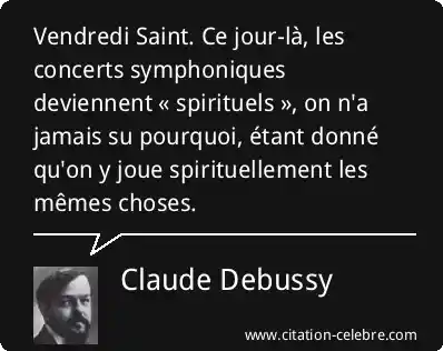 Vendredi Saint. Ce jour-là, les concerts symphoniques deviennent « spirituels », on n'a jamais su pourquoi, étant donné qu'on y joue spirituellement les mêmes choses.