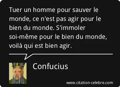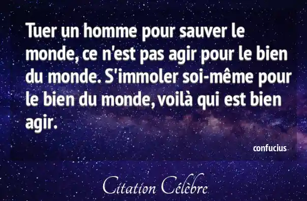 Tuer un homme pour sauver le monde, ce n'est pas agir pour le bien du monde. S'immoler soi-même pour le bien du monde, voilà qui est bien agir.