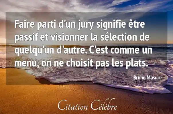 Faire parti d'un jury signifie être passif et visionner la sélection de quelqu'un d'autre. C'est comme un menu, on ne choisit pas les plats.