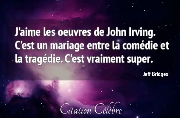 J'aime les oeuvres de John Irving. C'est un mariage entre la comédie et la tragédie. C'est vraiment super.