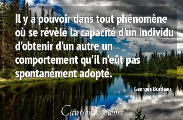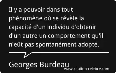 Il y a pouvoir dans tout phénomène où se révèle la capacité d'un individu d'obtenir d'un autre un comportement qu'il n'eût pas spontanément adopté.