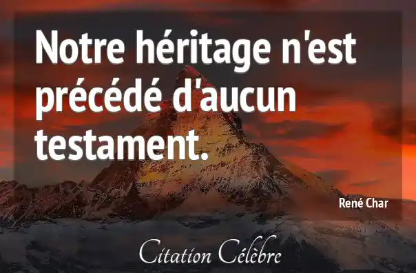 Notre héritage n'est précédé d'aucun testament.