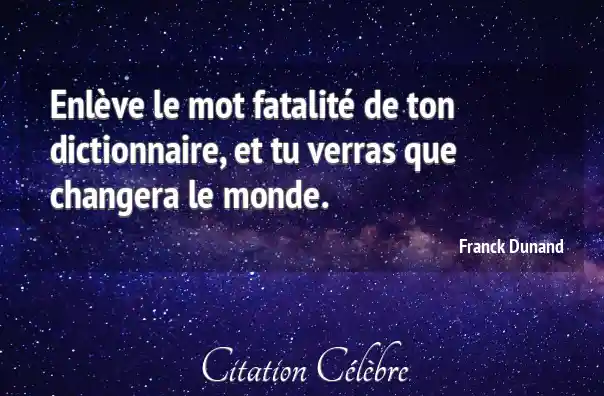 Enlève le mot fatalité de ton dictionnaire, et tu verras que changera le monde.