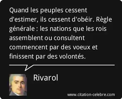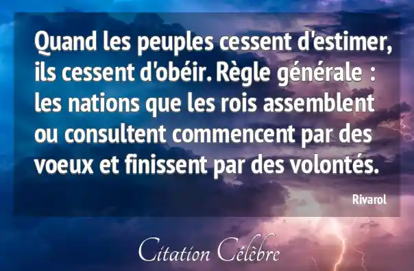 Quand les peuples cessent d'estimer, ils cessent d'obéir. Règle générale : les nations que les rois assemblent ou consultent commencent par des voeux et finissent par des volontés.