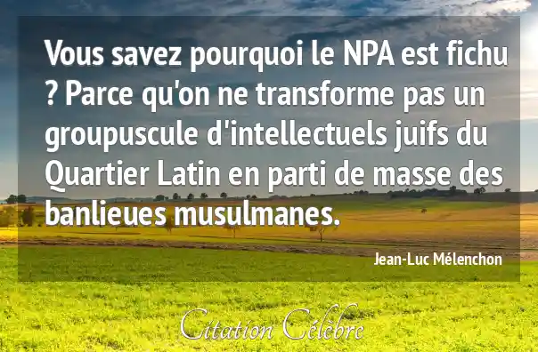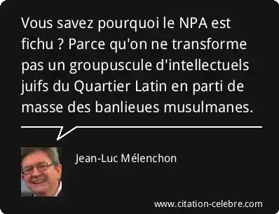 Vous savez pourquoi le NPA est fichu ? Parce qu'on ne transforme pas un groupuscule d'intellectuels juifs du Quartier Latin en parti de masse des banlieues musulmanes.