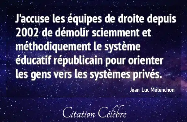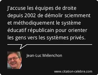 J'accuse les équipes de droite depuis 2002 de démolir sciemment et méthodiquement le système éducatif républicain pour orienter les gens vers les systèmes privés.