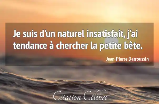 Je suis d'un naturel insatisfait, j'ai tendance à chercher la petite bête.