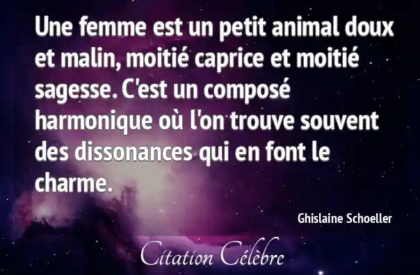 Une femme est un petit animal doux et malin, moitié caprice et moitié sagesse. C'est un composé harmonique où l'on trouve souvent des dissonances qui en font le charme.
