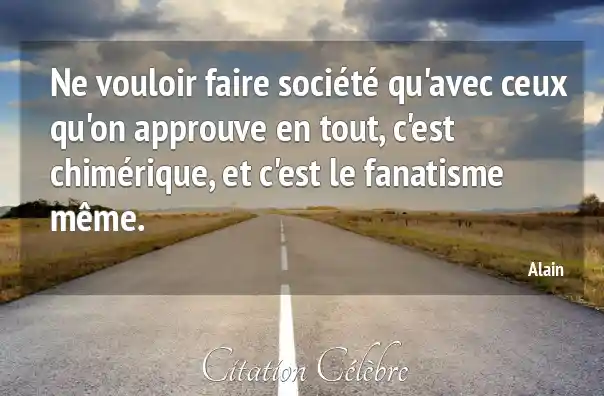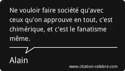 Ne vouloir faire société qu'avec ceux qu'on approuve en tout, c'est chimérique, et c'est le fanatisme même.