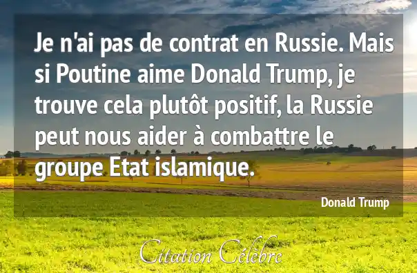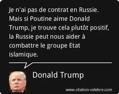 Je n'ai pas de contrat en Russie. Mais si Poutine aime Donald Trump, je trouve cela plutôt positif, la Russie peut nous aider à combattre le groupe Etat islamique.