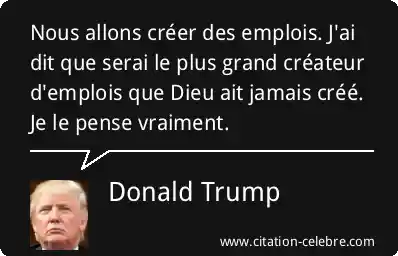 Nous allons créer des emplois. J'ai dit que serai le plus grand créateur d'emplois que Dieu ait jamais créé. Je le pense vraiment.