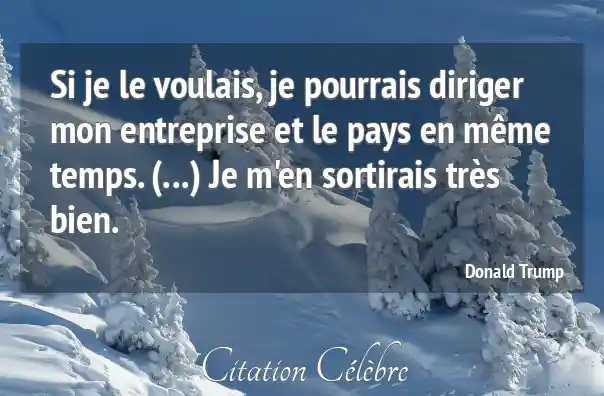 Si je le voulais, je pourrais diriger mon entreprise et le pays en même temps. (...) Je m'en sortirais très bien.