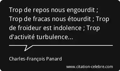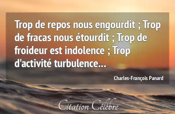 Trop de repos nous engourdit ; Trop de fracas nous étourdit ; Trop de froideur est indolence ; Trop d'activité turbulence...