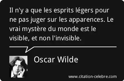 Il n'y a que les esprits légers pour ne pas juger sur les apparences. Le vrai mystère du monde est le visible, et non l'invisible.