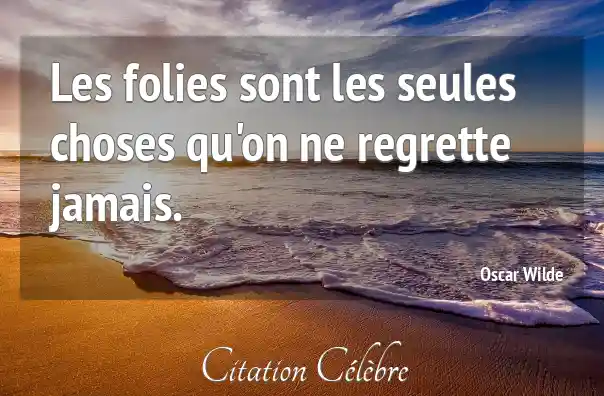 Les folies qu'un homme regrette le plus dans sa vie, sont celles qu'il n'a pas commises quand il en avait l'occasion.