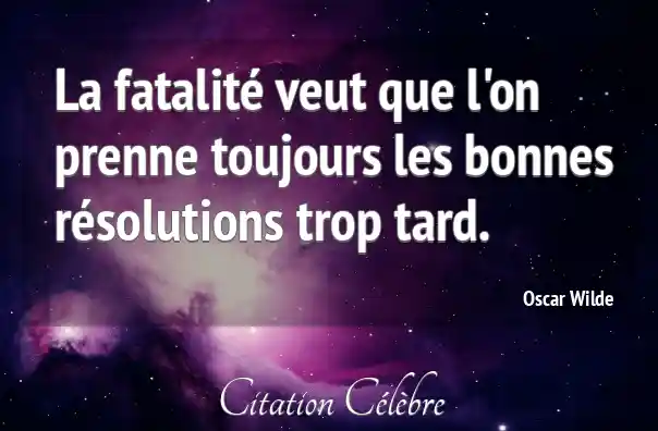 La fatalité veut que l'on prenne toujours les bonnes résolutions trop tard.