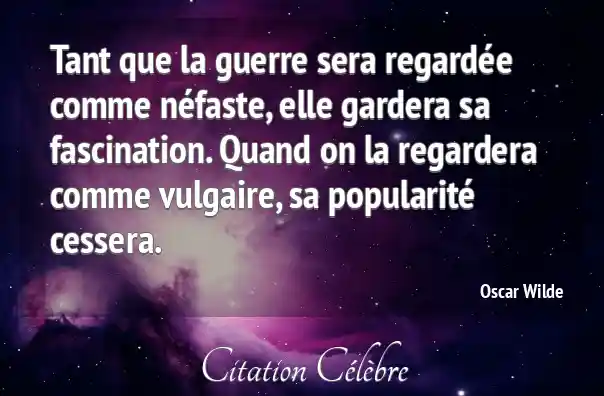 Tant que la guerre sera regardée comme néfaste, elle gardera sa fascination. Quand on la regardera comme vulgaire, sa popularité cessera.