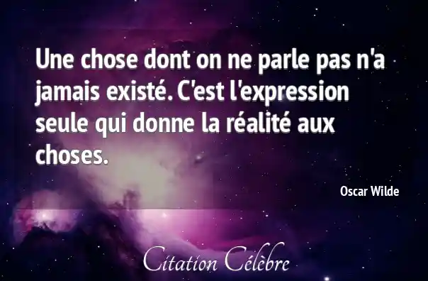 Une chose dont on ne parle pas n'a jamais existé. C'est l'expression seule qui donne la réalité aux choses.