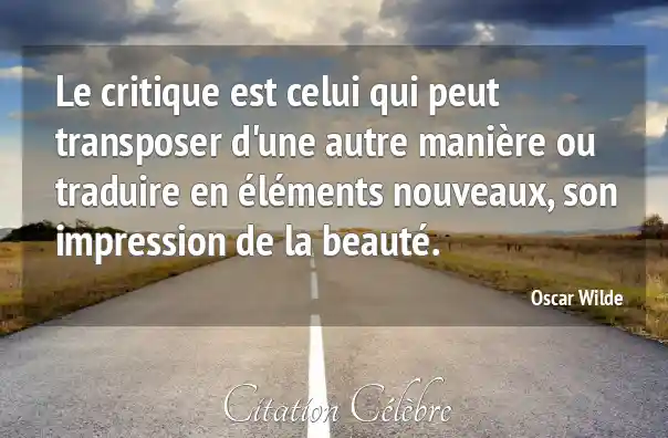 Le critique est celui qui peut transposer d'une autre manière ou traduire en éléments nouveaux, son impression de la beauté.