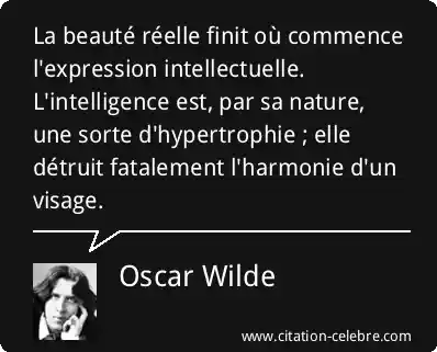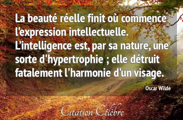 La beauté réelle finit où commence l'expression intellectuelle. L'intelligence est, par sa nature, une sorte d'hypertrophie ; elle détruit fatalement l'harmonie d'un visage.