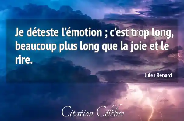 Je déteste l'émotion ; c'est trop long, beaucoup plus long que la joie et le rire.