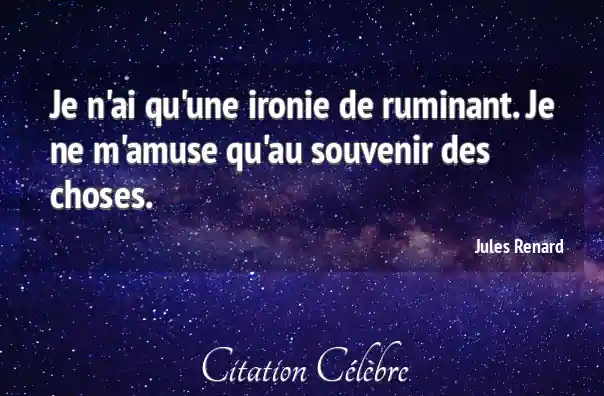 Je n'ai qu'une ironie de ruminant. Je ne m'amuse qu'au souvenir des choses.