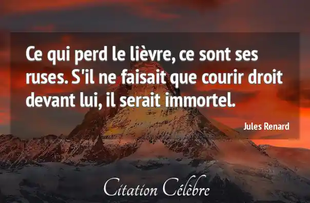 Citation Jules Renard droit : Ce qui perd le lièvre, ce sont ses ruses. S'il...