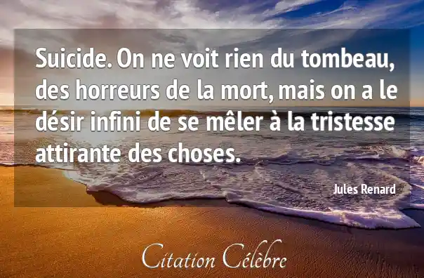 Suicide. On ne voit rien du tombeau, des horreurs de la mort, mais on a le désir infini de se mêler à la tristesse attirante des choses.