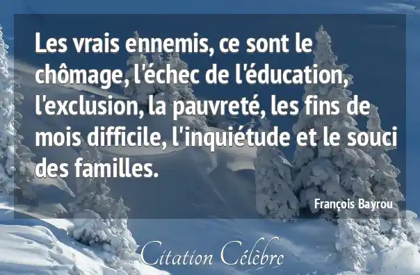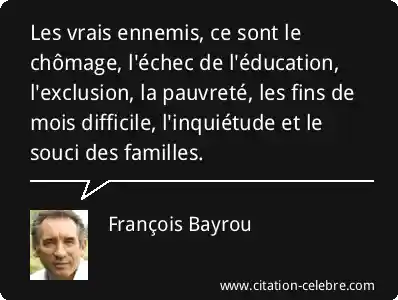 Les vrais ennemis, ce sont le chômage, l'échec de l'éducation, l'exclusion, la pauvreté, les fins de mois difficile, l'inquiétude et le souci des familles.