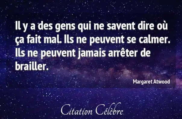 Il y a des gens qui ne savent dire où ça fait mal. Ils ne peuvent se calmer. Ils ne peuvent jamais arrêter de brailler.
