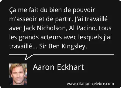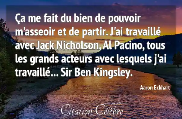 Ça me fait du bien de pouvoir m'asseoir et de partir. J'ai travaillé avec Jack Nicholson, Al Pacino, tous les grands acteurs avec lesquels j'ai travaillé... Sir Ben Kingsley.