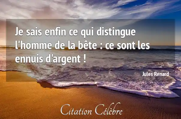 Je sais enfin ce qui distingue l'homme de la bête : ce sont les ennuis d'argent !