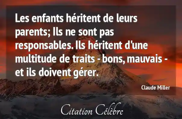 Les enfants héritent de leurs parents; Ils ne sont pas responsables. Ils héritent d'une multitude de traits - bons, mauvais - et ils doivent gérer.