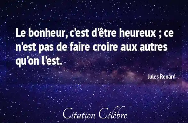 Le bonheur, c'est d'être heureux ; ce n'est pas de faire croire aux autres qu'on l'est.