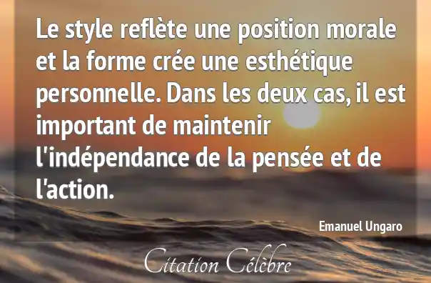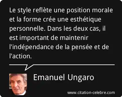 Le style reflète une position morale et la forme crée une esthétique personnelle. Dans les deux cas, il est important de maintenir l'indépendance de la pensée et de l'action.