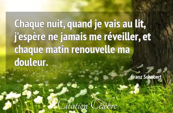 Chaque nuit, quand je vais au lit, j'espère ne jamais me réveiller, et chaque matin renouvelle ma douleur.