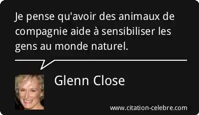 Je pense qu'avoir des animaux de compagnie aide à sensibiliser les gens au monde naturel.