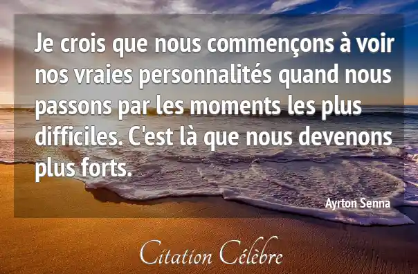 Je crois que nous commençons à voir nos vraies personnalités quand nous passons par les moments les plus difficiles. C'est là que nous devenons plus forts.