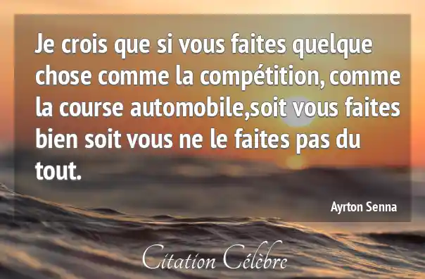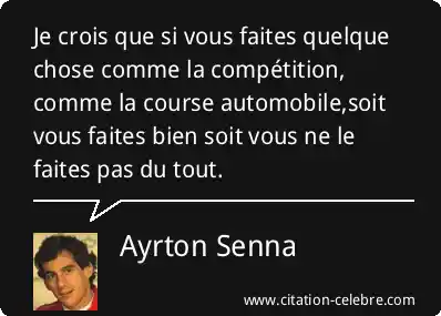 Je crois que si vous faites quelque chose comme la compétition, comme la course automobile,soit vous faites bien soit vous ne le faites pas du tout.