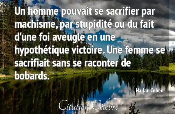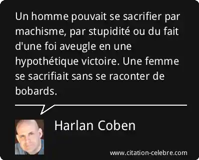 Un homme pouvait se sacrifier par machisme, par stupidité ou du fait d'une foi aveugle en une hypothétique victoire. Une femme se sacrifiait sans se raconter de bobards.