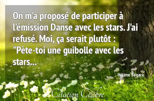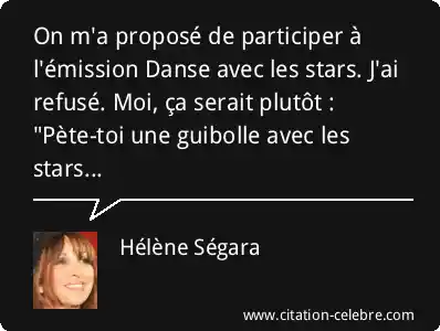 On m'a proposé de participer à l'émission Danse avec les stars. J'ai refusé. Moi, ça serait plutôt : "Pète-toi une guibolle avec les stars...